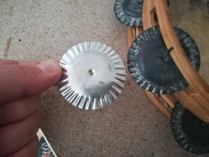 Ferreña pertencente a unha pandeireta atopada por Patricia López e Xermán Muíños no lugar de Corvillón (A Merca), e que cederon para a súa reprodución.